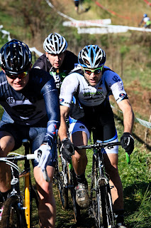 Quick side note: While we were lining up, one of the racers, Gunnar, said, "Hey, aren't you Chuck Kyle?". Shocked, I simply replied, "Yes". He told me he reads the blog, enjoys it since it gives him a goal. I initially thought this was pretty cool, glad someone is reading it. Then several other guys who start in the back and fight their way forward told me the same thing. I don't want to speak for Gunnar, as he did not tell me his actual race goal, but some of the others did. Their goal? Catch me. Yes, I am a marked man in the middle of the pack. Now that is pretty cool since we can't get all the way to the front and chase the leader. Instead, the gantlet has been dropped and we have a race for the leader of the (middle of the) pack. If you are one of these guys and racing Capital Cross, hit me up with a cross results Rapha Challenge, chuckkyle@me.com.